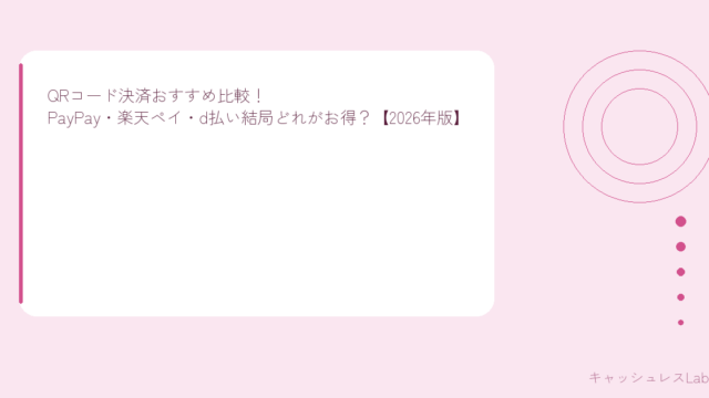 「QRコード決済、種類多すぎてどれを使えばいいの?」「結局一番お得なのはどれ?」PayPay、楽天ペイ、d払い、au PAY…QRコード決済は選択肢が多くて、どれをメインにすべきか迷っちゃうよね。この記事では、主要QRコード決済4社を還元率...